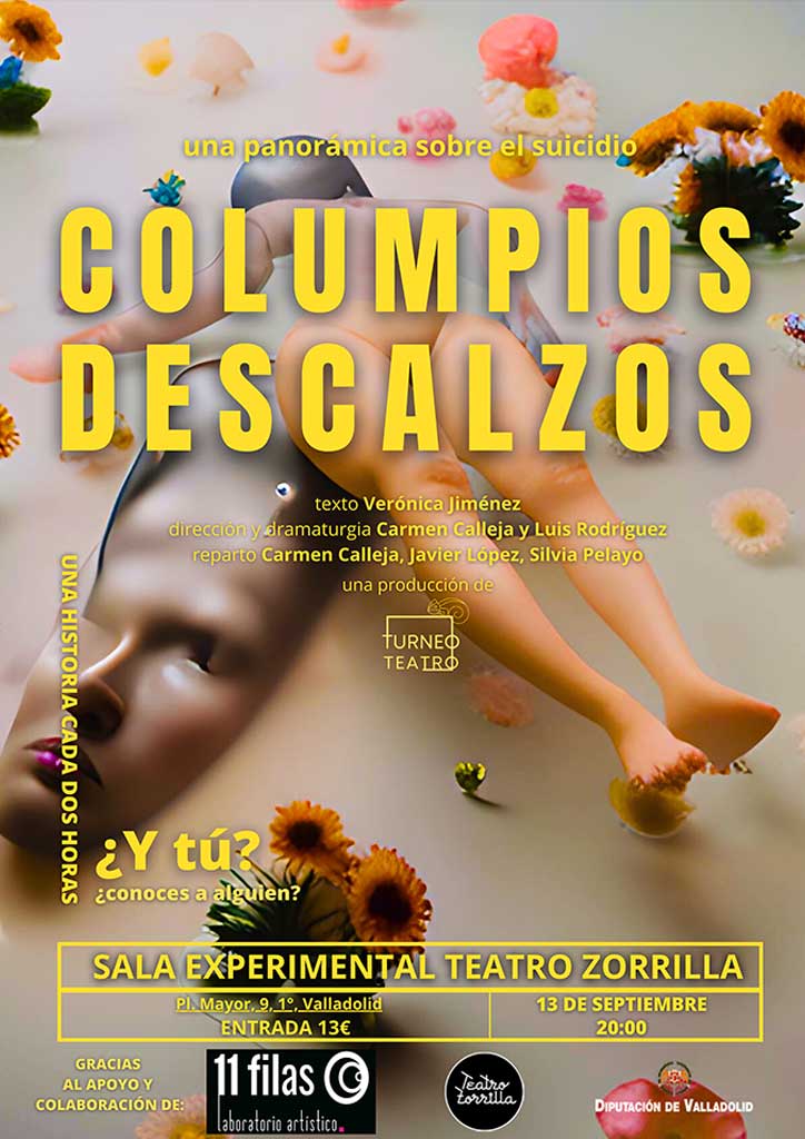 SINOPSIS: La obra “Columpios Descalzos” surge de un proceso de documentación previo en torno a la panorámica del suicidio y una necesidad como jóvenes creadores por responder a la pandemia social que afecta a nuestro planeta y que, además, se ha incrementado tras la crisis sanitaria de la Covid-19.