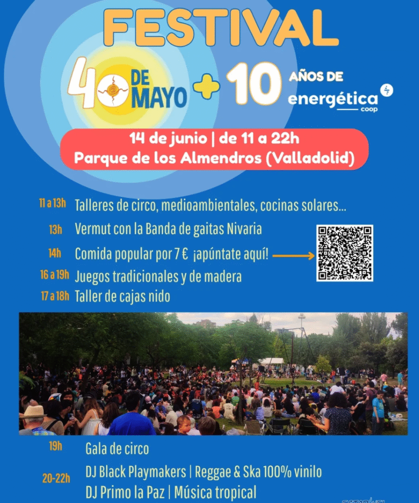 La VII edición del 40 de mayo tendrá lugar el sábado 14 de junio de 2025 (11:00 a 20:00 h.) en el Parque de los Almendros, sede de este particular Festival.