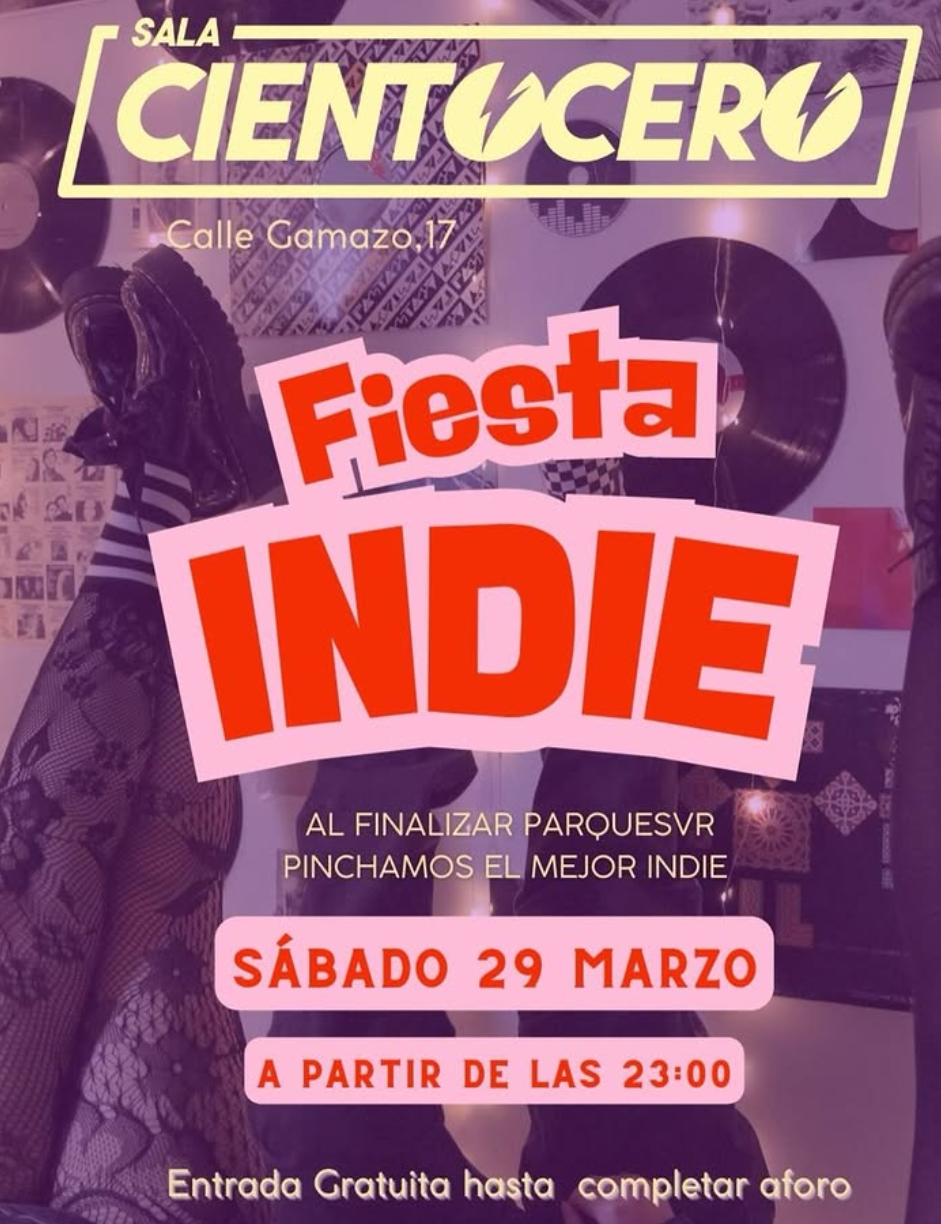 El día 29, al finalizar Parquesvr … fiestita Indie con pinchada de los temazos de moda del panorama INDIE
