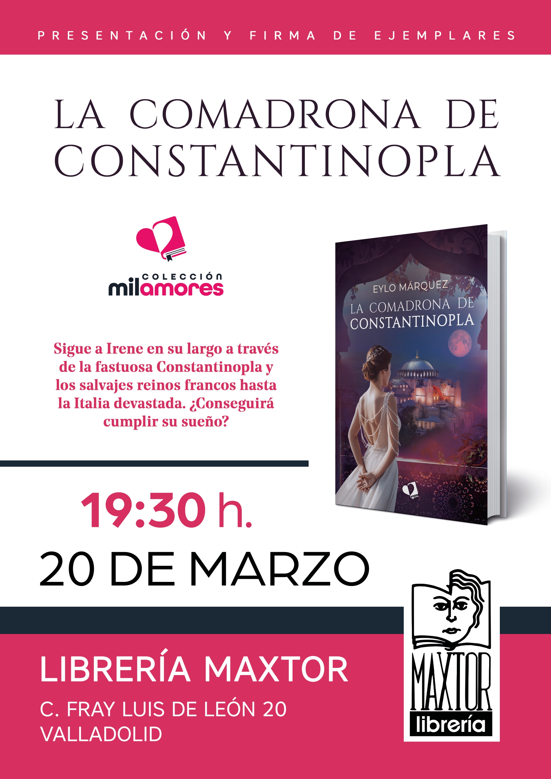Librería Maxtor acoge la presentación y firma de ejemplares del libro ‘La comadrona de Constantinopla’, de Eylo Márquez.