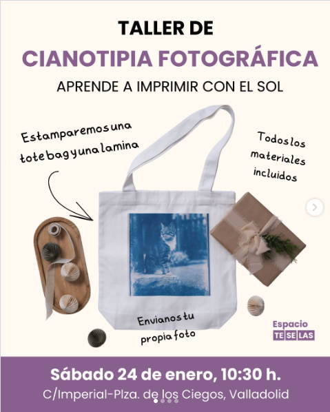 ✨ ¡Imprime tus recuerdos con el sol! ☀️ 💙¿Sabías que con la cianotipia puedes imprimir tus propias fotos en una bolsa de tela o en un papel de acuarela? 💙En este taller aprenderás todos los conceptos básicos de la cianotipia aplicados a la impresión de fotografías. 📸 Tú eliges la imagen: envíanos tu foto favorita ...