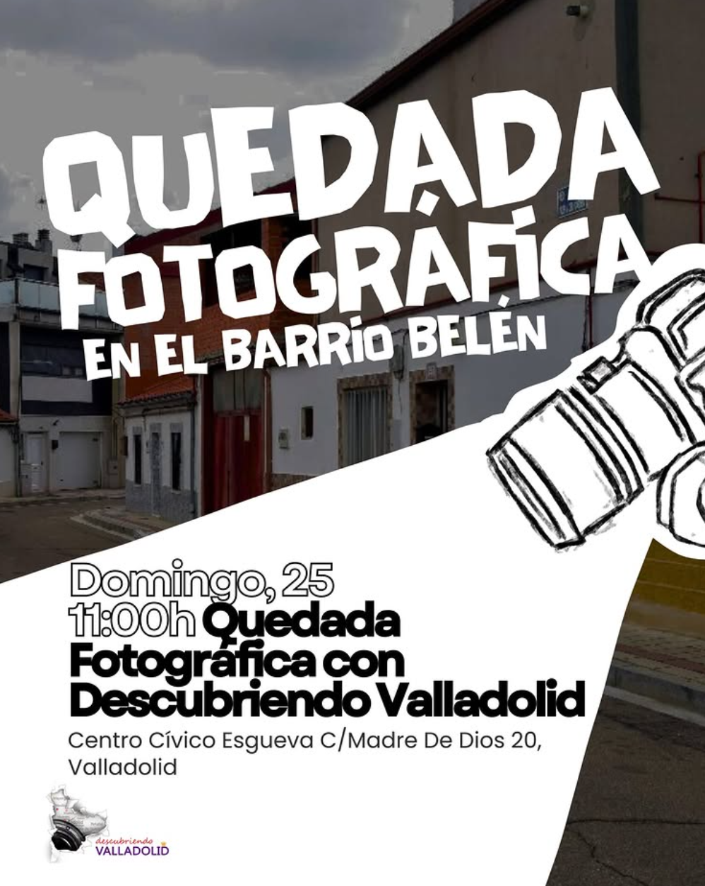 Este domingo 25, Descubriendo Valladolid organiza su tradicional paseo fotográfico por el Barrio Belén. En el punto de partida, la antigua cárcel (calle Madre de Dios, 20) se hará la tradicional foto de grupo para continuar por la Av. Valle de Esgueva hasta el “lago” de las universidades, después se callejeará por las calles del ...
