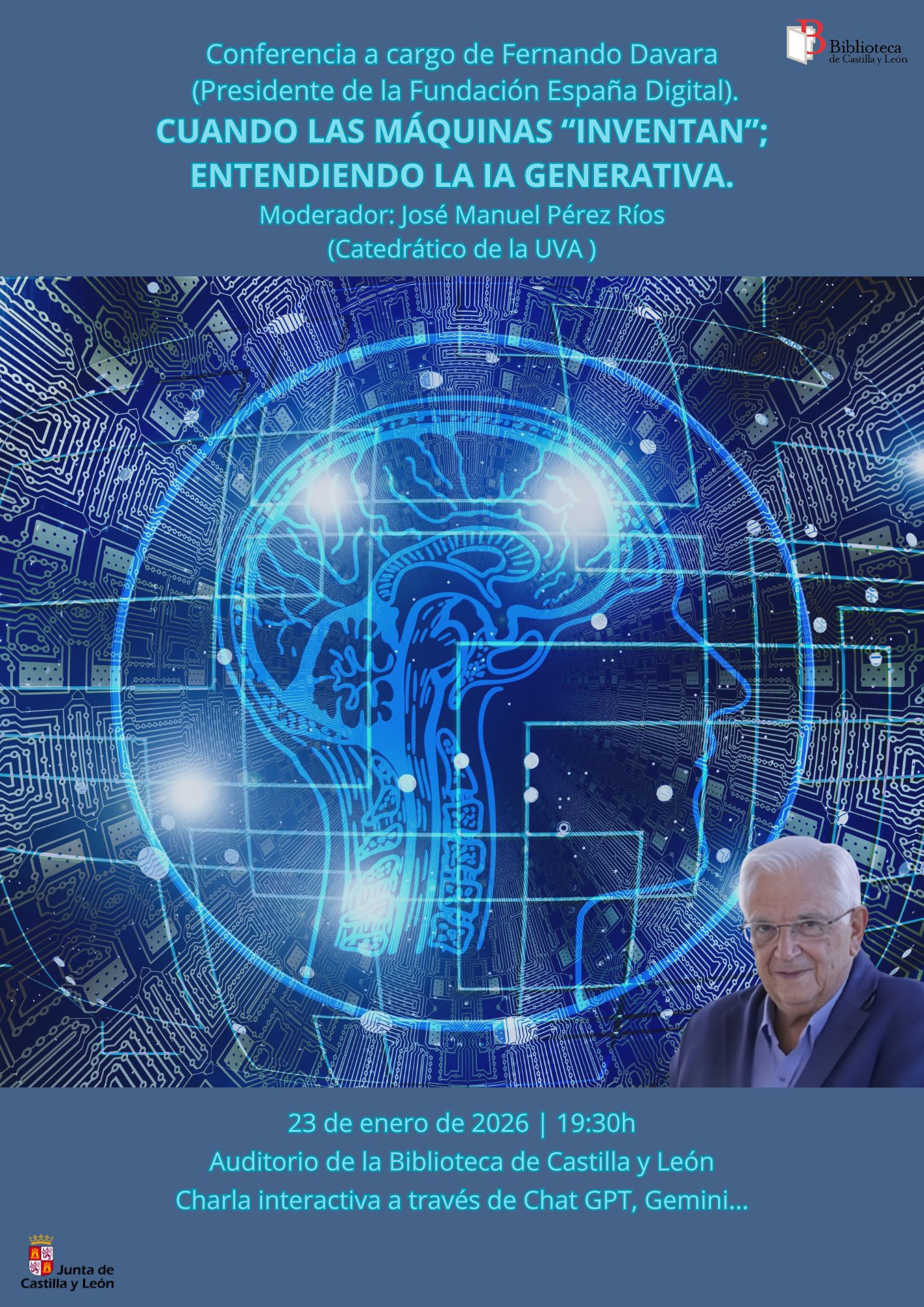• Conferencia «Cuando las máquinas ‘inventan’; entendiendo la Inteligencia Artificial Generativa (ChatGpt, Gémini, etc.): el arte de preguntar y el reto de verificar”