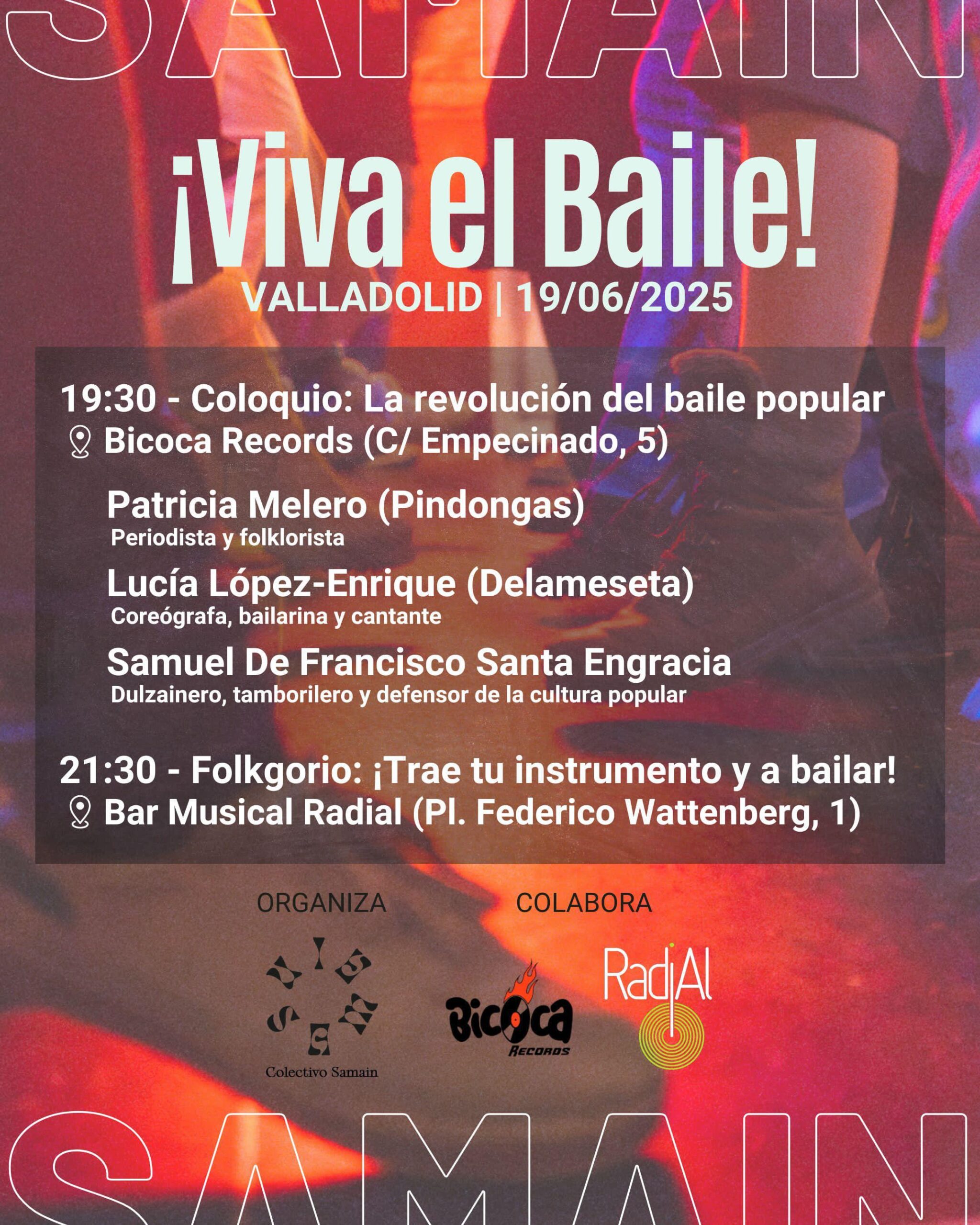 Desde el Colectivo Samain, presentamos una nueva jornada con dos actividades para el jueves 19 de junio en Valladolid. 🎙️ Coloquio: "La revolución del baile popular" donde contaremos con la presencia de:🔺Patricia Melero @patrimele (periodista y folklorista responsable de @pindongas ) 🔺Lucía López-Enrique @lucialopezenrique (coreógrafa, bailarina y cantante. Integrante del grupo @delameseta ) 🔺Samuel de ...