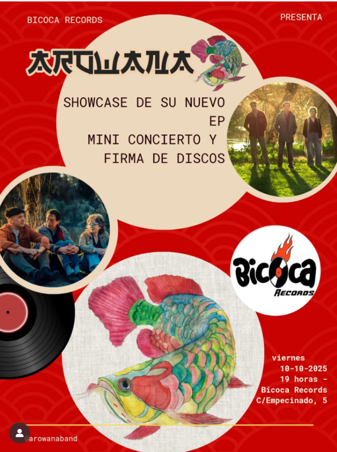 Este viernes 10 de octubre tenemos un showcase y firma muy espacial, nuestro amigos de Arowana nos regalarán varios de sus temas que recogeremos en una Bicoca Session.📹 Banda formada en Valladolid que mezcla folk, indie y pop alternativo con un espíritu cálido y orgánico, con Thai, músico procedente de California afincado en la ciudad, ...